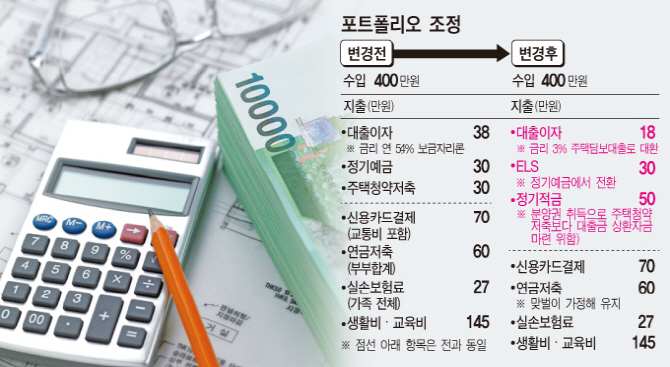 다른 하나는 3000만원가량 예치 중인 정기예금입니다. 부채가 있는 상황에서 대출금리보다 못한 정기예금에 자금을 예치하고 있는 것은 비효율적인 자금 운용입니다. 연 5~6% 정도의 수익률을 기대할 수 있으면서 위험이 제한된 형태의 주가연계증권(ELS) 투자로 전환하는 게 현명한 방법이라 생각합니다.