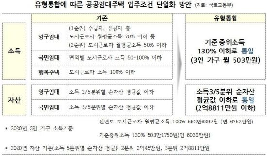 정부가 주거복지 강화 차원에서 제시한 공공임대주택 유형 통합의 구체적 방안이 나왔다.