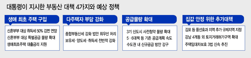 ▶청년·신혼부부 등 무주택자에 청약 문턱 낮춰주나=3일 정부에 따르면 문 대통령이 전날 김 장관에게 지시한 4가지 방안은 ▷실수요자·생애최초 구입자·전월세 거주 서민에 대한 지원방안 마련 ▷주택 공급물량 확대 ▷집값 불안 시 즉각적인 추가대책 마련 ▷다주택자 등 투기성 주택 보유자 부담 강화 등이다.