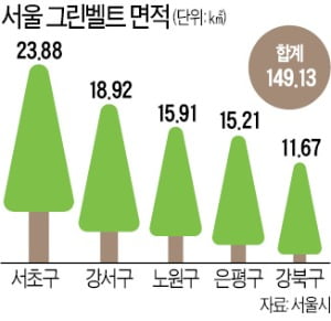 그린벨트 해제는 재개발·재건축 규제를 유지한 채 강남 등 도심 공급을 늘릴 사실상 유일한 방법으로 꼽혔다. 서울에서 가장 넓은 그린벨트를 둔 곳은 서초구(23.88㎢)다. 여기를 풀어 주택을 공급하면 강남 집값을 상당 부분 안정시킬 것으로 기대됐다. 서울시 그린벨트는 149.13㎢로 전체 면적의 25%에 달한다.