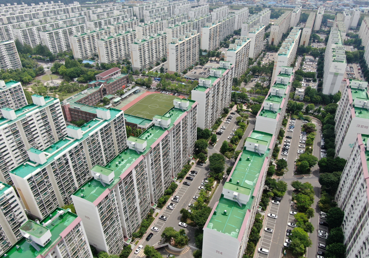 ↑ 다음달부터 지방 광역시의 민간택지에서 공급되는 아파트 분양권 전매가 금지될 전망이다. 사진은 대전시 서구 둔산동 아파트 단지 모습. [연합]