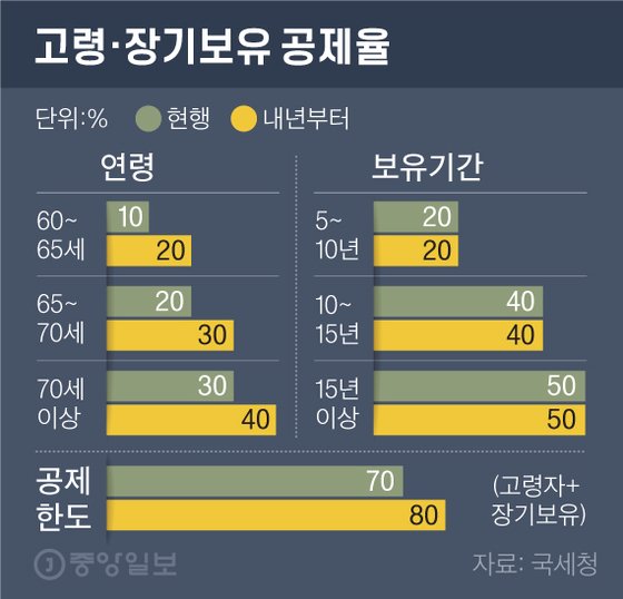 고령·장기보유 공제율. 그래픽=차준홍 기자 cha.junhong@joongang.co.kr