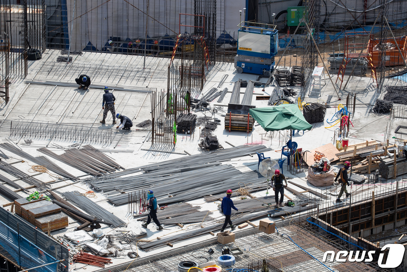 서울시내 한 아파트 공사현장에서 작업을 하는 인부들 모습. /뉴스1